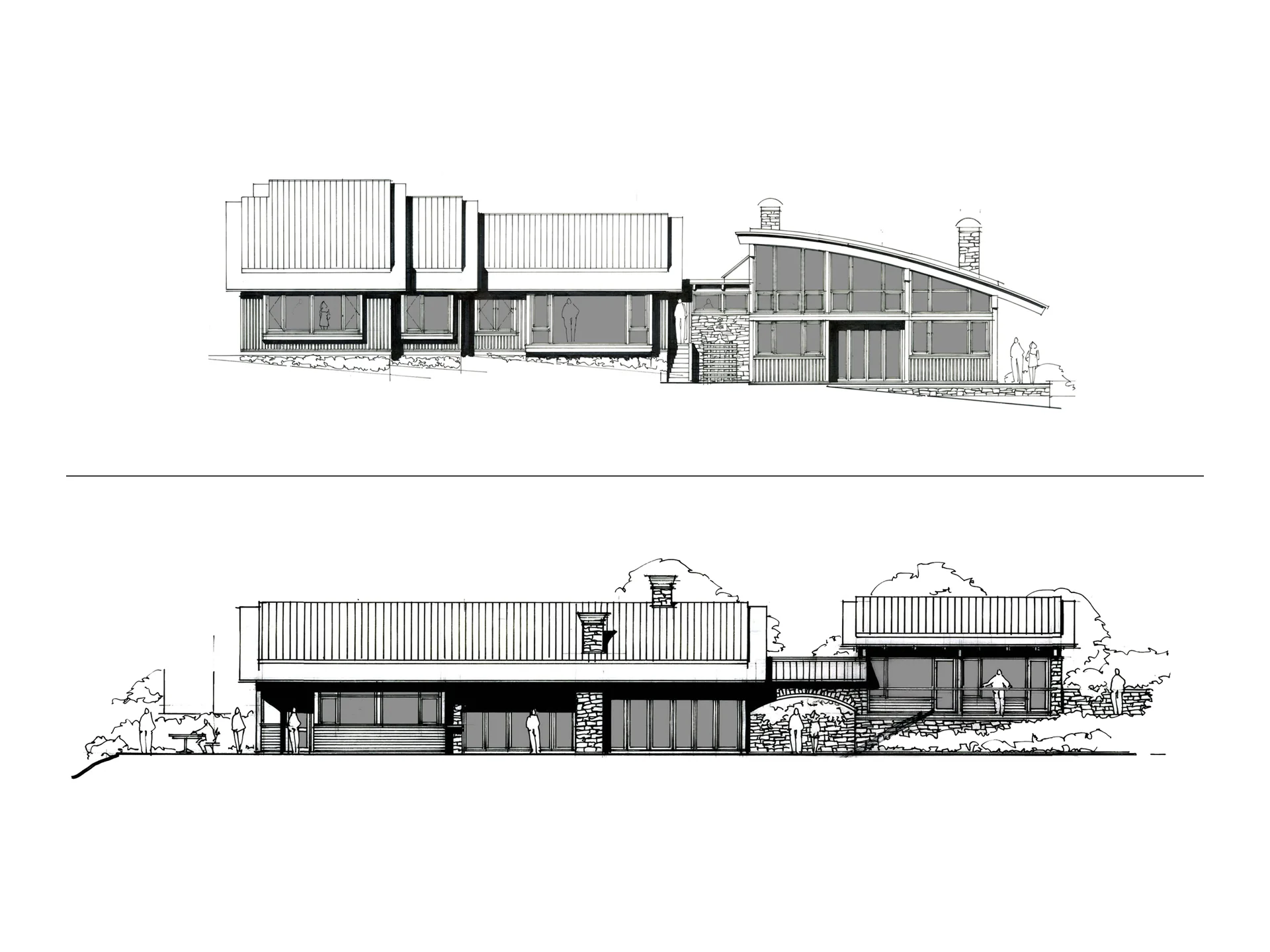 Ferry travelers between Swartz Bay and Tsawwassen can spot this cluster of buildings as they travel through Active Pass. The compound includes the main residence and two guest houses. Designed to take advantage of the low-bank waterfront, the building transitions seamlessly from the inside living spaces to exterior patios, garden, and beachfront. A sheltered courtyard provides a barbecue and entertainment area, protected from the ocean breeze but still retaining visual connection to the foreshore and ocean through the transparency of the living space.